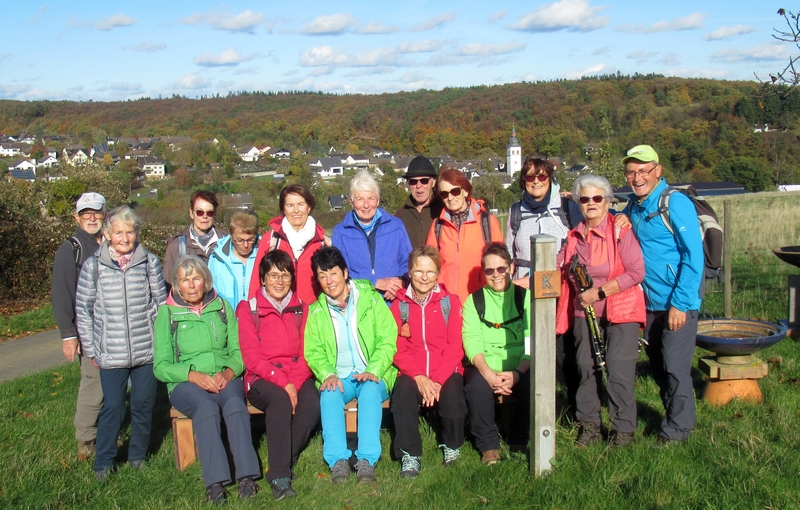 Als hätte der Wettergott im Oktober all´ seine Sonnenstrahlen zurückbehalten für den letzten Donnerstag, an dem eine Wandergruppe des Sinziger Eifelvereins, geführt von Hildegard Frey, den Rundweg von Königsfeld über das Waldgut Schirmau und Schalkenbach ging. Von der hochgelegenen Hütte Schauinsland bot sich den Teilnehmenden ein außergewöhnlich klarer Blick bis hinüber ins Siebengebirge. Bei der kurzen Rast wurde unter reger Beteiligung naturgemäß das Herbstlied "Bunt sind schon die Wälder ..." gesungen.