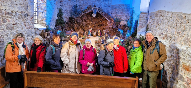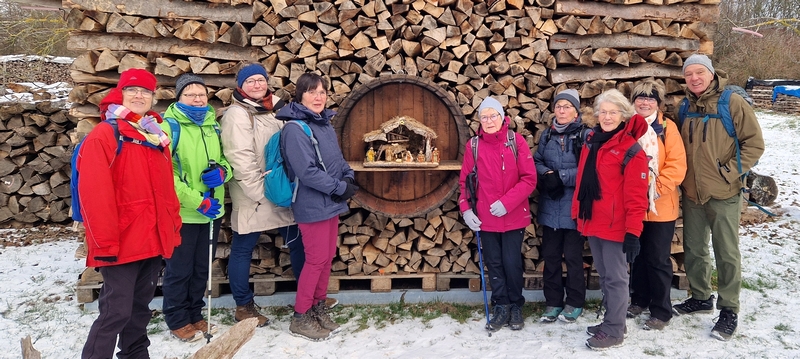 Gleich 206 Krippendarstellungen erwarten die Besucher auf dem Krippenweg entlang des Biebrichsbachs bei Montabaur. Diese besondere Attraktion ließ sich der Eifelverein Sinzig nicht entgehen. Anfang Januar machte sich daher eine Wandergruppe unter der Leitung von Konrad Waßmann bei winterlichen Bedingungen auf den Weg in den Westerwald. Der Rundweg startet am Mons-Tabor-Bad. Von dort führt die Strecke zunächst über einen Naturpfad entlang des wildromantischen Biebrichsbachs und durch ein Waldgebiet. In liebevoller Arbeit sind die zahlreichen Krippen harmonisch in die Landschaft eingebettet.