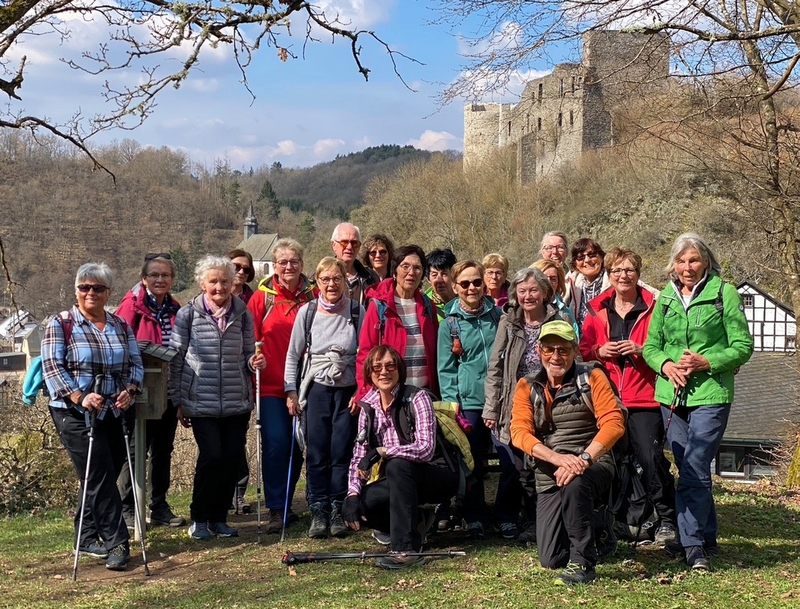 Bei frühlingshaftem Wetter machten sich 21 Mitglieder des Eifelvereins Sinzig auf den Weg zu einer Wanderung auf dem Traumpfad "Virne-Burgweg". Startpunkt war das Gemeindehaus in Virneburg. Von dort führte die Route zunächst über den Nitzbach und anschließend steil hinauf zu einer kleinen Kapelle. Ein schmaler Wiesenpfad schlängelte sich weiter hinauf zur imposanten Burgruine Virneburg.